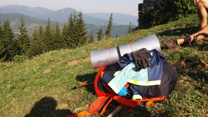 - Rucsac. În funcție de cât de zile petreceți pe munți, diverse mărimi și capacități de rucsac sunt recomandate (al meu e de 50 L, dar am cărat și de 30 L, și ghiozdan mai mic chiar). Oricum, rucsacele de obicei pot fi și împrumutate (ca aproape orice obiect enumerat mai sus) de la prieteni sau alți oameni care au. Esențial la un rucsac e să îți ofere confort și echilibru la spate și șale, să se prindă bine în talie și deasupra toracelui, nu un chin.